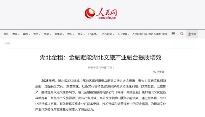 2025年初,湖北省加快建成中部地区崛起重要战略支点推进大会提出,要大力实施文化创新战略,加强长江文化、荆楚文化、红色文化等特色资源保护传承和活化利用,以文塑旅,以旅彰文,整体提升支点文化影响力。湖北金融租赁股份有限公司(简称:湖北金租)紧扣湖北文化创新战略部署,聚焦本土文旅资源开发与产业升级,充分发挥融物+融资功能优势,通过特色化、专业化租赁解决方案,有效破解文旅企业在设备更新、技术升级和运营提升中的资金瓶颈,为荆楚文化产业创新转化与高质量发展注入了强劲动力。