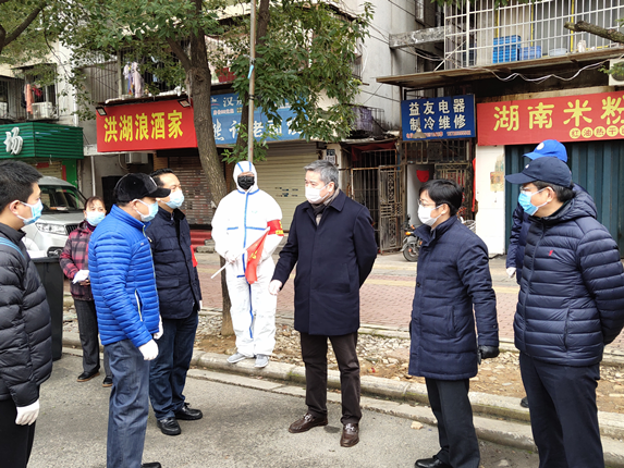 2月13日上午,市国资委党委书记、主任陈祖信,带领市国资委党委副书记、副主任程春生及市国资委宣传处负责人等一行,来到集团值守的硚口区韩家墩街云鹤社区调研疫情防控工作。集团党委委员、董事、集团下沉硚口片区抗疫组指挥长任伟林,集团总经理助理、集团下沉硚口片区抗疫组组长程驰光及相关同志陪同调研。