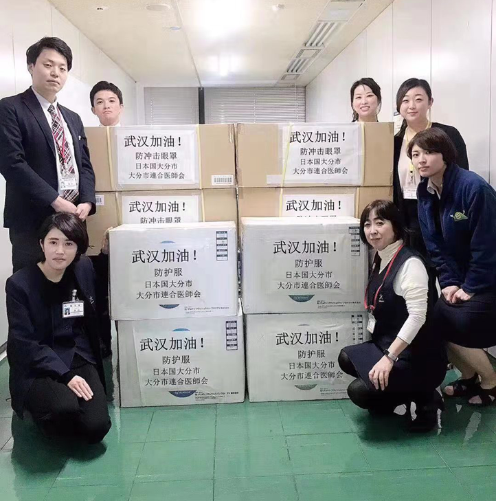 大分市和武汉市是友好城市,为援助友城武汉市抗拒疫情,集团旗下武汉国交中心作为友城服务平台,积极协助大分市政府通过市委外办联系,向武汉红十字会捐赠3万枚医用口罩、400副防护眼罩和400套防护服,分两次搭乘日本政府撤侨包机运往武汉,受到中外媒体广泛报道和网友的大量好评,进一步深化了中日友好城市感情。