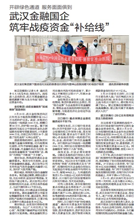 兵马未动,钱粮先行。战疫进入总攻阶段,武汉市属金融国企继续源源不断为各方参战“部队”输送资金补给。