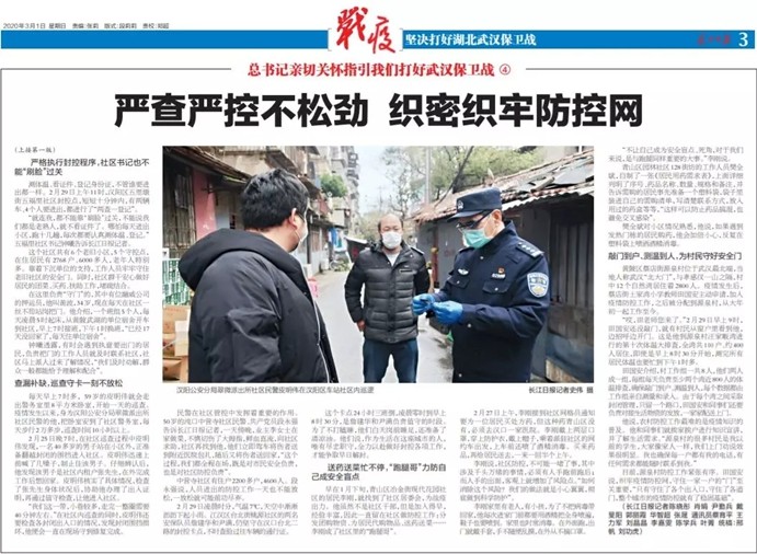 “就连我,都不能靠‘刷脸’过关,不能说我们都是老熟人,就不看证件了。哪怕每天进出小区,跑十几趟,每次都要认真测体温、登记。”五福里社区书记钟曦告诉长江日报记者。
