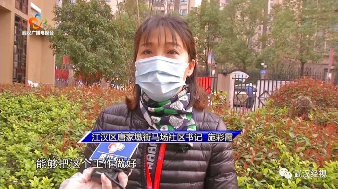 江汉区唐家墩街马场社区书记施彩霞:我们也希望发挥下沉干部的先进模范作用,党组织的引领作用,切实在国家疫情困难的当前,能够把这个工作做好,保障我们居民群众的生命安全。