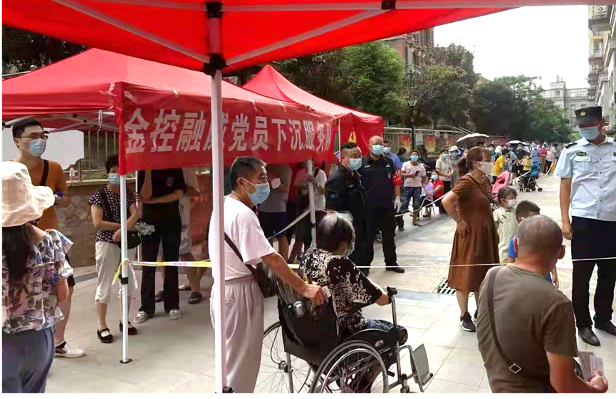 集团总部刘静同志站好核酸检测信息录入的第一班岗,并在下沉岗位上度过了一个有意义的生日。开投公司龚军辉和梁惠敏两位58岁的老党员,在近40度的高温天气里,协助社区进行入户排查,从1楼爬到26楼一户一户敲门,排查600余户。融威押运汪华新同志全力以赴守控在检测现场,每天连续奋战12个多小时,配合医护人员进行信息采集、帮助群众做好身份信息登记,3天共协助完成核酸检测近2万人次。