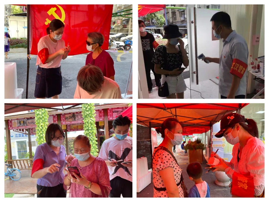 8月4日起,集团17个下沉服务队开始协助社区进行核酸检测工作,酷暑高温下,队员们主动亮明党员身份,充分发挥党员的先锋模范作用,不惧风险、坚守岗位,高效协助社区顺利完成全市第一轮核酸检测。本周连日大雨,队员们不畏恶劣天气,积极踊跃报名参加社区卡口值守,严格落实“四必”要求,做好返汉人员登记、测温及报告工作,冒雨登门到户排查核酸检测情况,为守紧筑牢社区安全第一道防线提供坚强支撑。