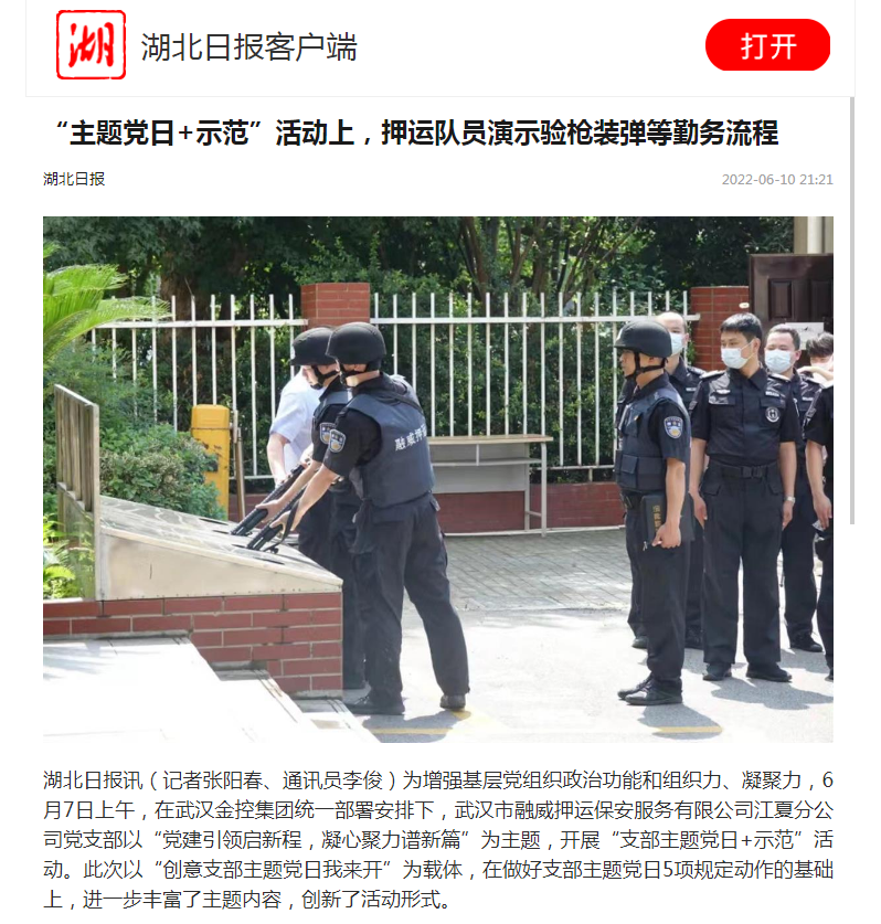 为增强基层党组织政治功能和组织力、凝聚力,6月7日上午,在bv伟德国际体育官方网站集团统一部署安排下,武汉市融威押运保安服务有限公司江夏分公司党支部以“党建引领启新程,凝心聚力谱新篇”为主题,开展“支部主题党日+示范”活动。此次以“创意支部主题党日我来开”为载体,在做好支部主题党日5项规定动作的基础上,进一步丰富了主题内容,创新了活动形式。