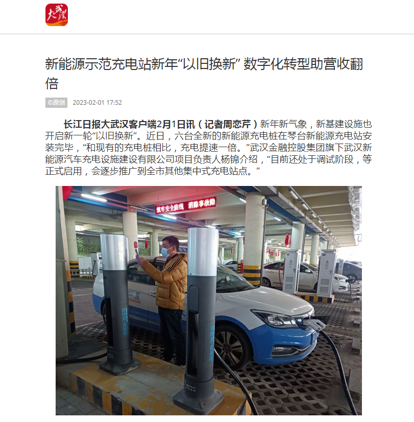 长江日报:新能源示范充电站新年“以旧换新” 数字化转型助营收翻倍