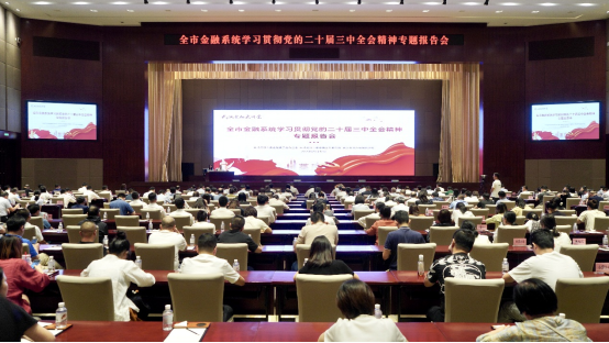 9月12日,市委金融办、市委金融工委举办全市金融系统学习贯彻党的二十届三中全会精神专题报告会暨“武汉金融大讲堂”系列活动。武汉金融控股集团党委书记、董事长梅林作专题辅导报告,市委金融办分管日常工作的副主任、市委金融工委分管日常工作的副书记叶晓飞主持报告会并讲话。市委金融委员会组成部门、各区相关负责同志以及全市金融机构、地方金融组织约300人参加。