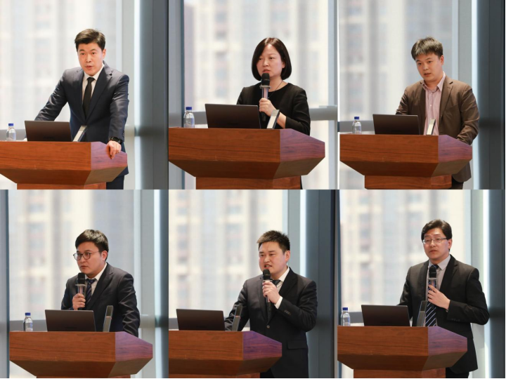 湖北金租、华源证券、长江国贸、开投公司、湖北顶好等5家单位的6名代表围绕“心怀金控大局,打开业务多维局面,共享协同成果”作分享交流。