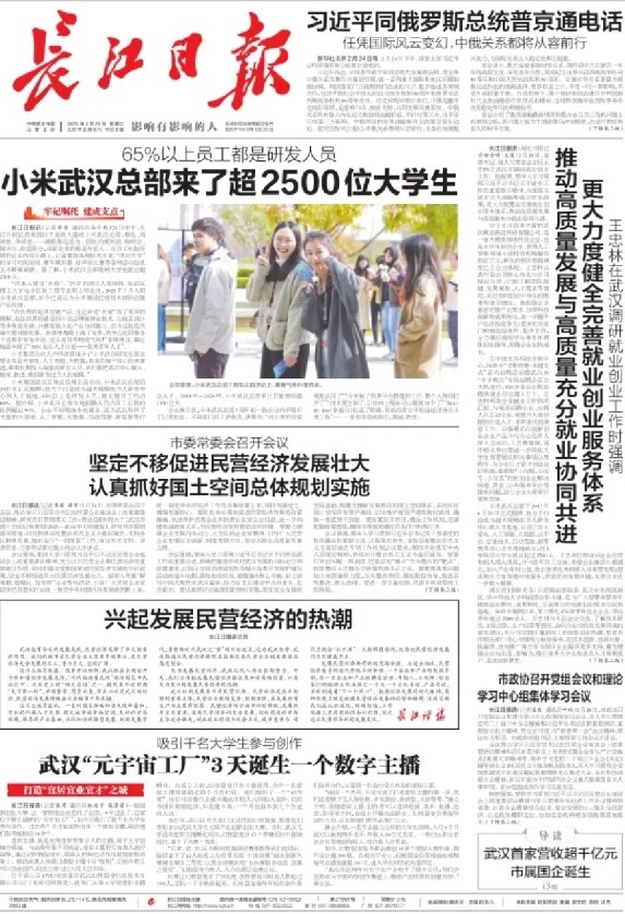 长江日报头版:武汉首家超千亿元市属国企诞生
