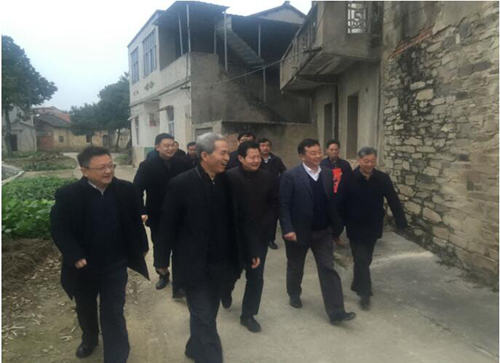 召开调研会后,马董事长和市纪委监察局的领导步行来到龚家大