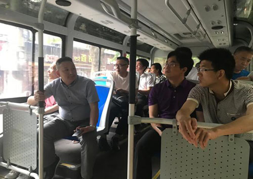 考察团乘坐武汉市408路电动公交车