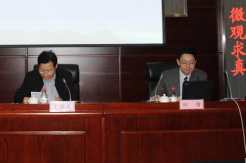 叶青教授通过图片、花絮等丰富有趣的方式,回顾了自己参加两会期间的见闻及感想。他介绍了中央政治局常委、国务院副总理李克强同志参加湖北代表团讨论时提到的三点问题:三化(城镇化、工业化、农业现代化)拉动内需问题;扶贫攻坚问题;保障民生问题。总结了今年政府工作报告中的10个亮点,概括了两会十大热点话题,并结合湖北省情、武汉市情作了生动具体的解析。