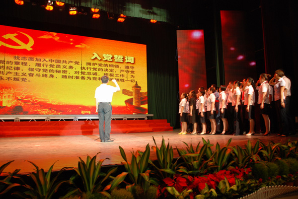 会议对涌现出的长发武汉公司党委、武汉长江资产经营管理有限公司党委、武汉开发投资有限公司机关党支部、武汉中小企业信用担保有限公司党支部、武汉斯贝卡专用汽车有限公司党支部等5个基层党组织,刘修昆、罗仁清、唐正、董军、盘旺星、黄青一(女)、徐新力、张云革、郑献伟、邱慎行等10名优秀共产党员,冯进(女)、张晓柏、周诗清、汤继红(女)、杨波等5名优秀常务工作者进行了表彰。25名新党员在副总经理孙建清同志领誓下庄严宣誓。